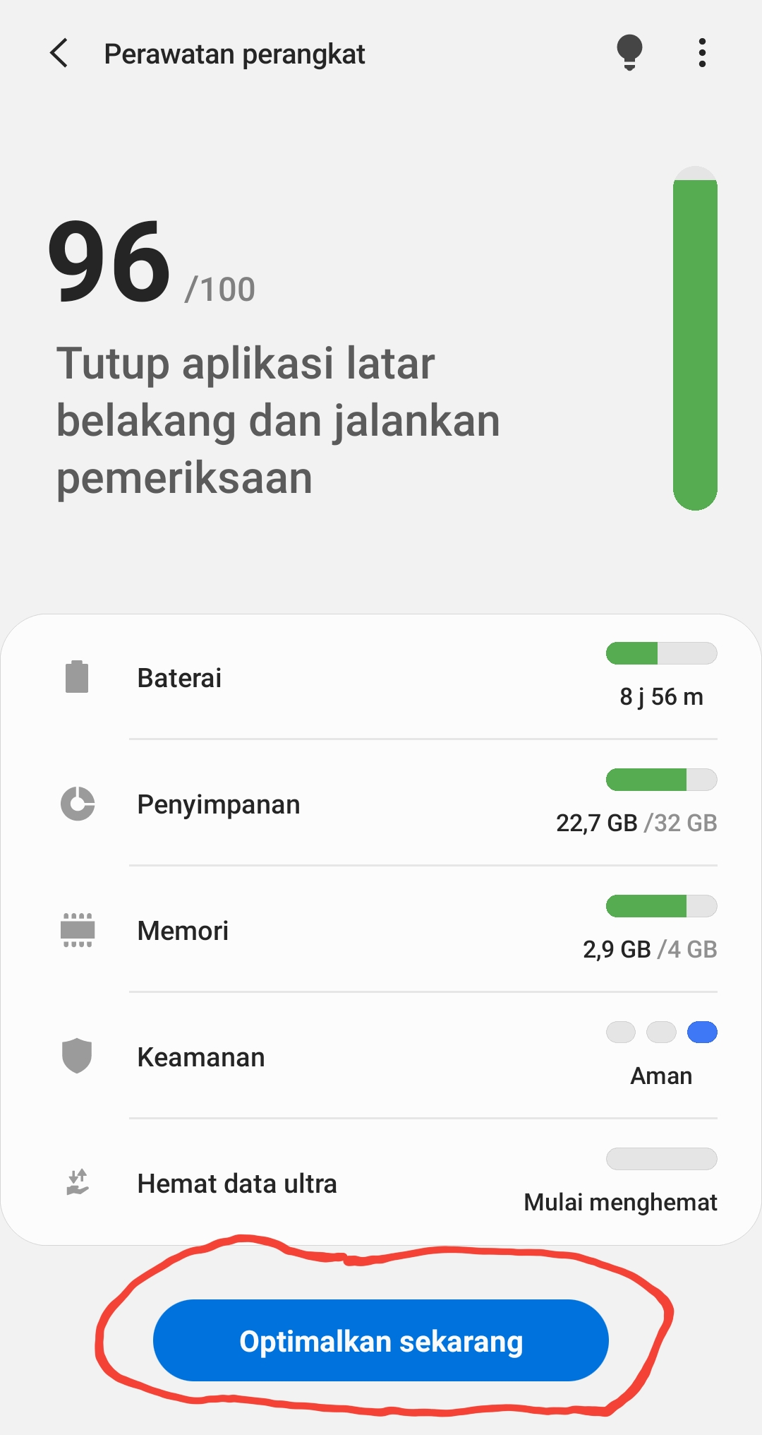 Kedua, pilih perawatan perangkat + optimalkan